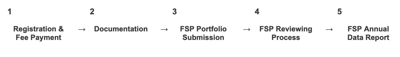 FSP Certification is charged at a single flat fee per asset submitted as part of the entity, and a single invoice is issued based on the total number of assets identified within the portfolio. The FSP invoice must be paid upfront at the time of Registration.